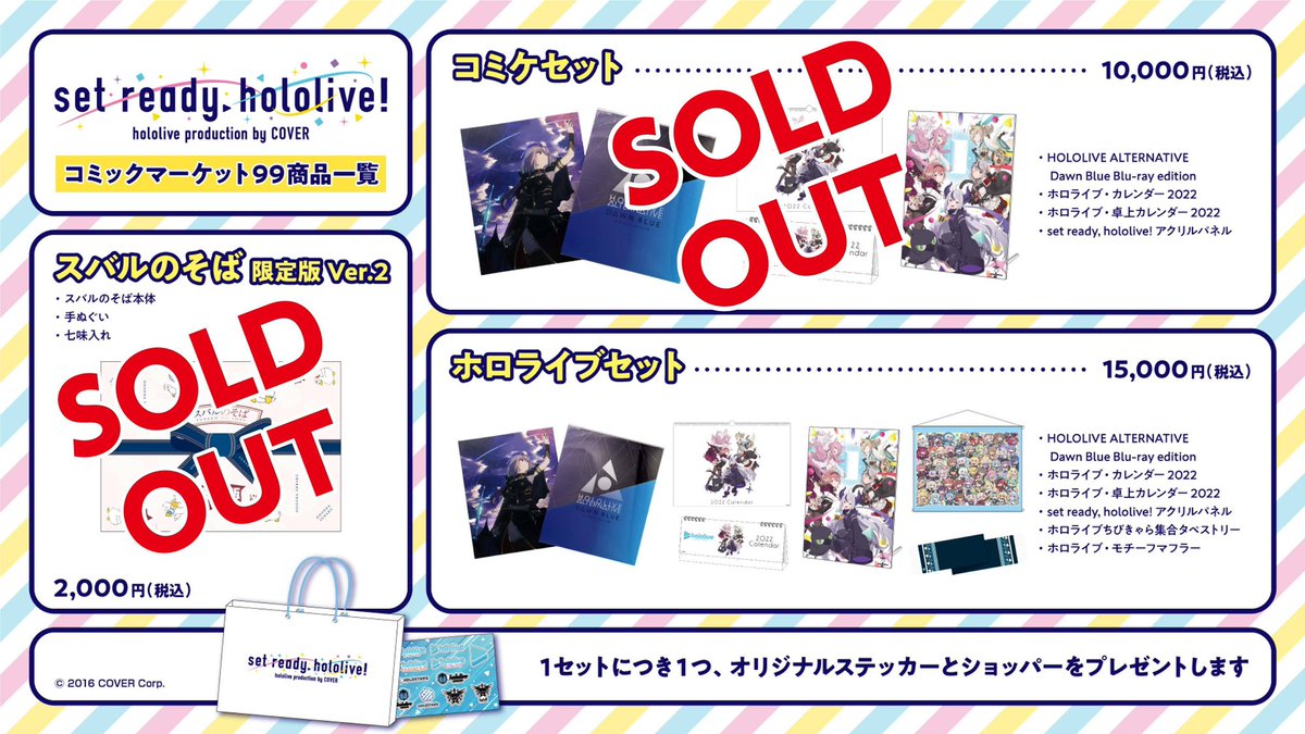 引き続き「コミケセット」及び「ホロライブセット」は販売中となりますので、ぜひお買い求めくださいませ。