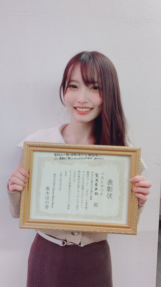 以前 #SSRほのけ にゲストとして出させて頂いたときに、ほのマッチ選手権という企画の中で最もほの香さんとマッチすることに成功しましてその賞状を頂きました✨