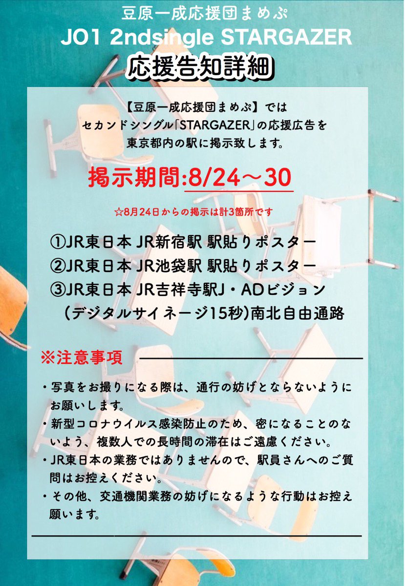 JO1セカンドシングル『STARGAZER』発売を記念して、本日より東京都内の駅に応援広告を掲示いたします!