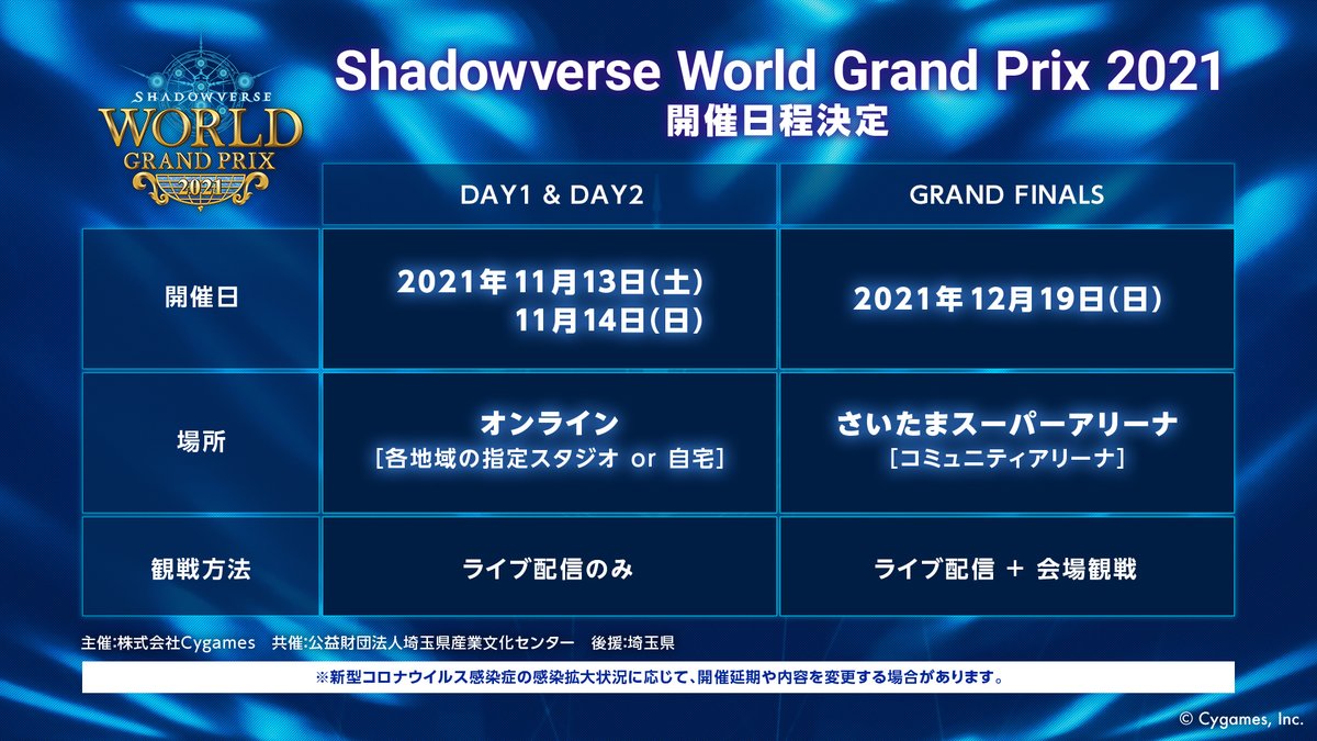 「Shadowverse World Grand Prix 2021」の開催予定を発表いたしました!