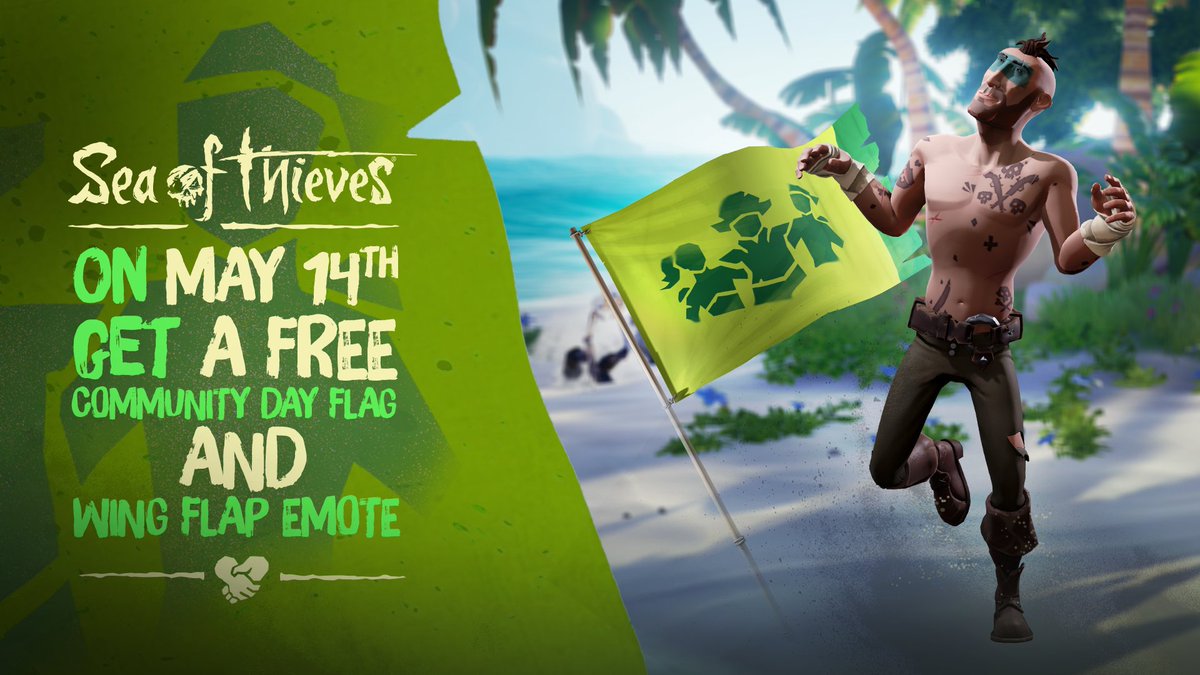 On #SeaOfThievesCommunityDay, nothing says “we come in peace” quite like the combo of Season Six Community Day Flag and flailing Wing Flap Emote. Who wouldn't share loot with a pirate pulling off that move? Sail between 10am May 14th and 10am May 15th (times UTC) to secure yours.