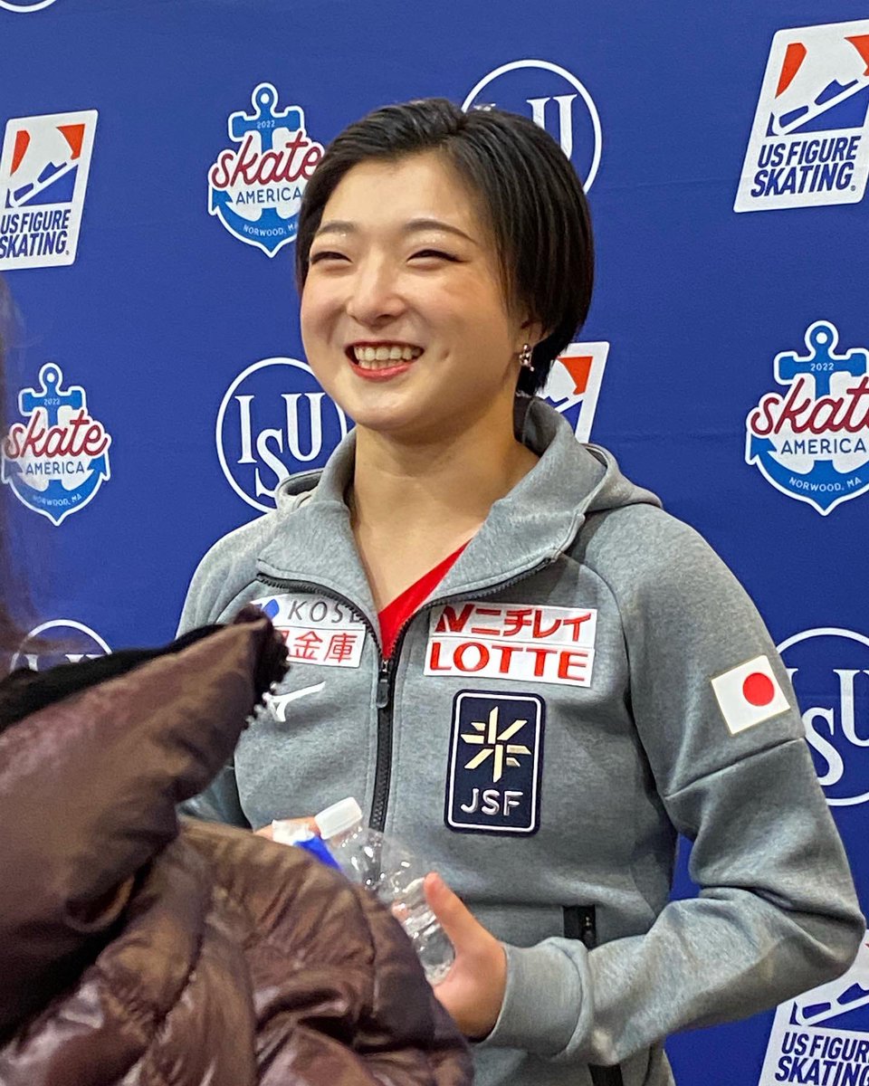 A happy and obviously relieved #KaoriSakamoto 🇯🇵 #坂本花織 speaks with the Japanese press after her victory! 👏🏻