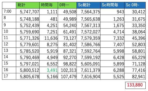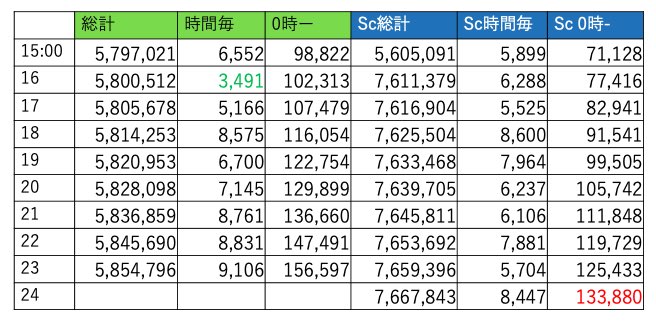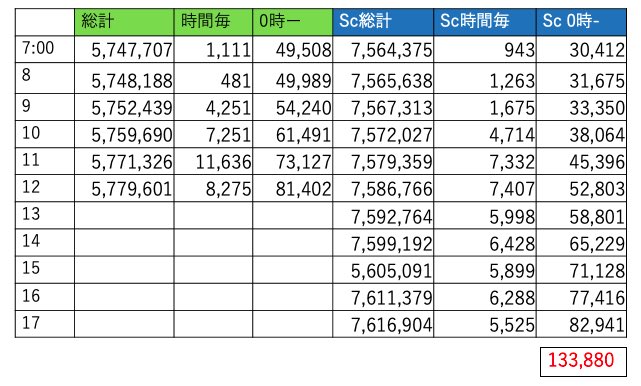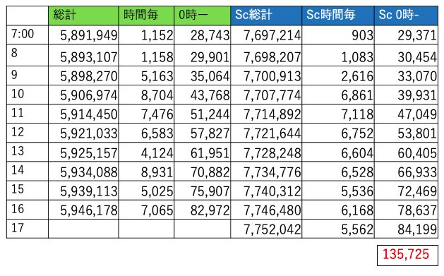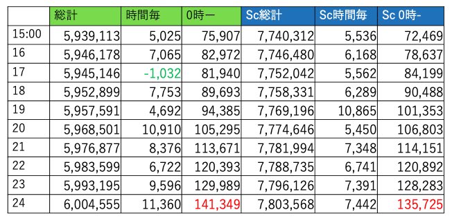 600万まで7万8967回、17時段階で595万あたり行ってると今日中に間に合うかなぁ?て感じです。行けそうですね😊👍