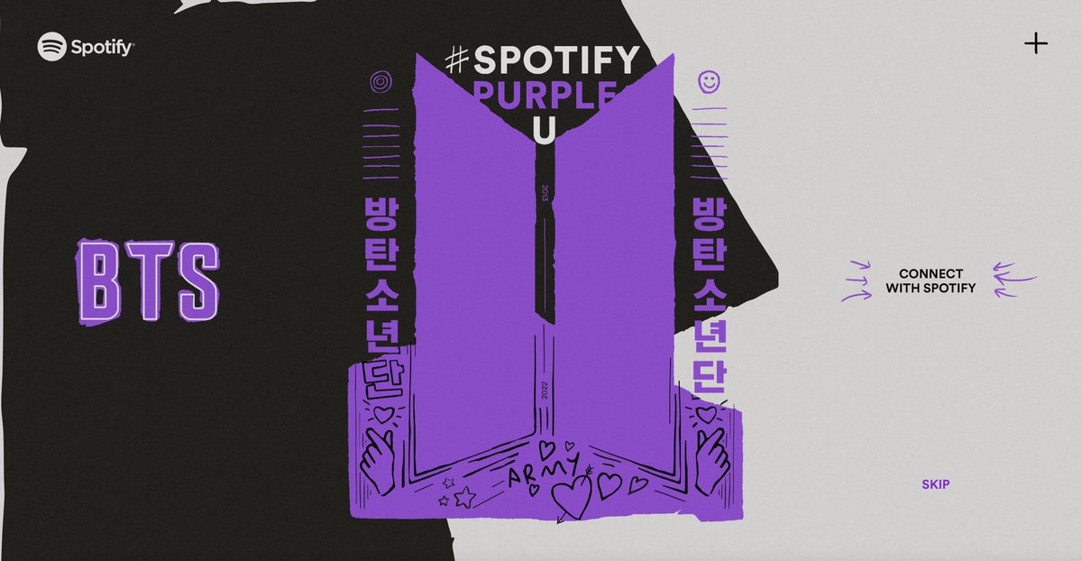 Check out #SpotifyPurpleU microsite for BTS. Connect with your Spotify account to find out your top streamed BTS track, and answer to more questions on BTS tracks incl. your first fave, newest fave and ult fave as well as your favorite BTS era