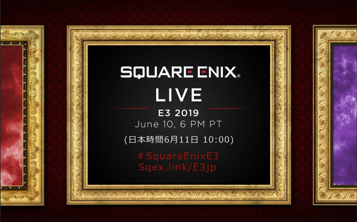 いよいよ明日、日本時間6月11日(火)10時より「Square Enix Live E3 2019」の模様をライブ配信いたします。 Sqex.link/E3jp にてご視聴いただけますのでお見逃しなく! #SquareEnixE3 をツイートして会話に参加しましょう!