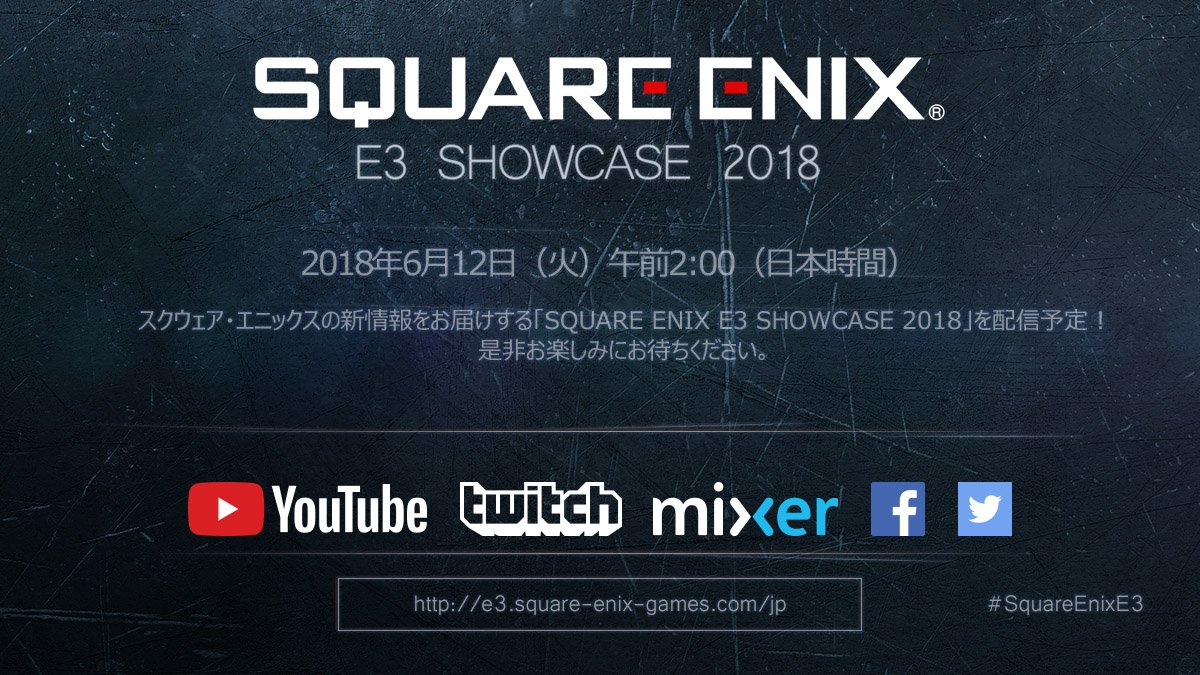 【このあとすぐ!】スクウェア・エニックスの新情報をお届けする「SQUARE ENIX E3 SHOWCASE 2018」は、日本時間2018年6月12日(火)午前2:00配信予定です!