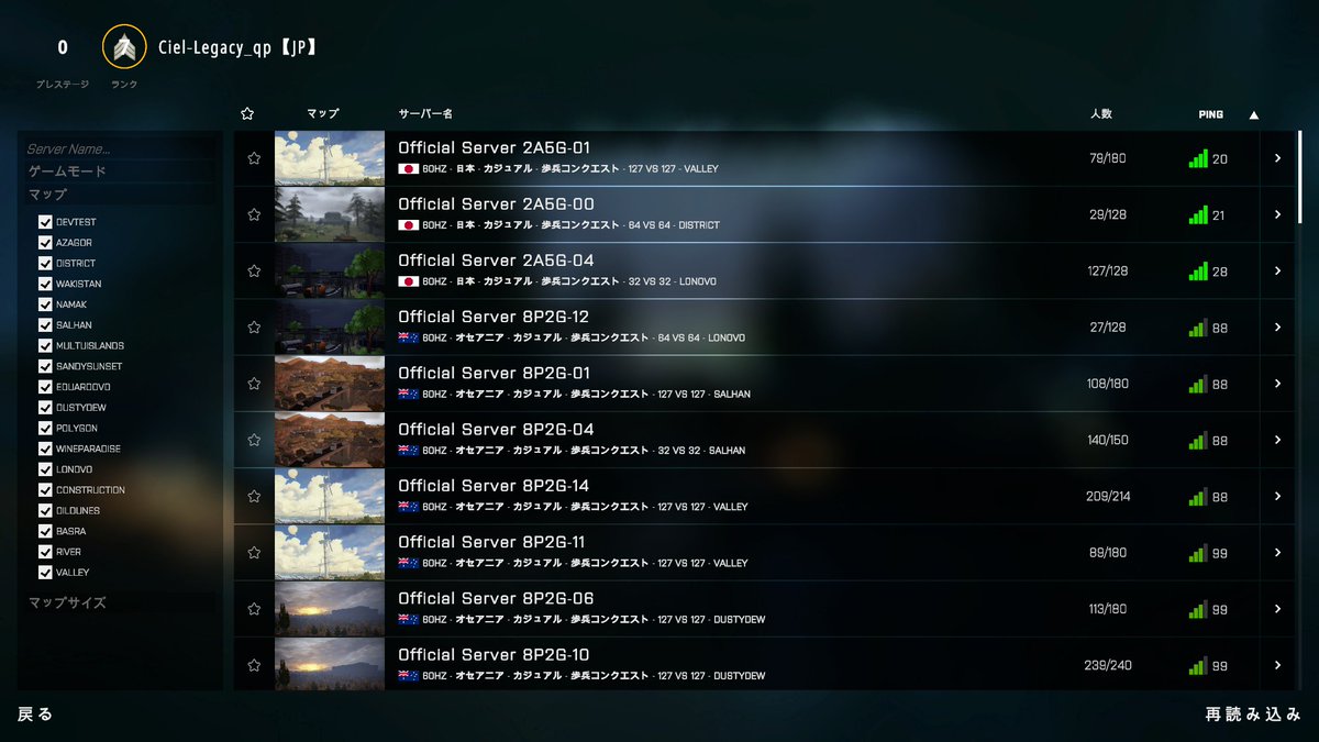 マップ18種類の最大254人対戦。1分隊8人で日本語と日本鯖を完備