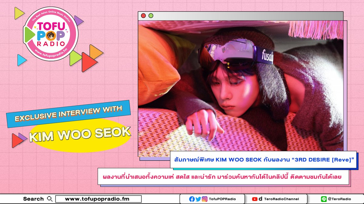 @sonymusicth @KWS_official_ 💖สัมภาษณ์พิเศษกับ #KIMWOOSEOK มาพร้อมผลงานล่าสุด #3RD_DESIRE_Reve วันนี้มาร่วมพูดคุยกับชาว #TofuPOPRadio เกี่ยวกับคอนเซ็ปต์ของอัลบั้มนี้