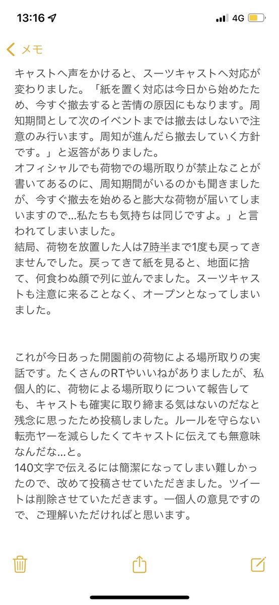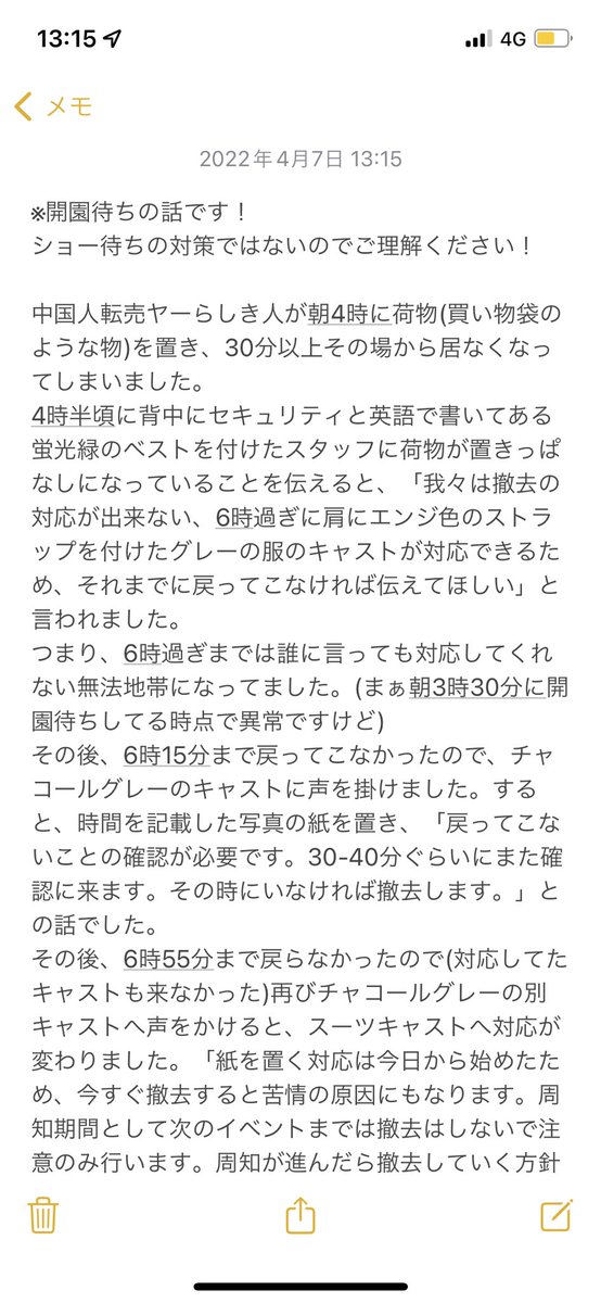 午前に投稿した開園前の荷物での場所取りについて、様々な憶測が出ておりましたため、事実だけをまとめました。宜しければお読みください。#TDR_now
