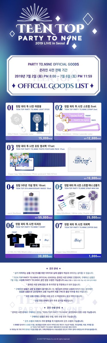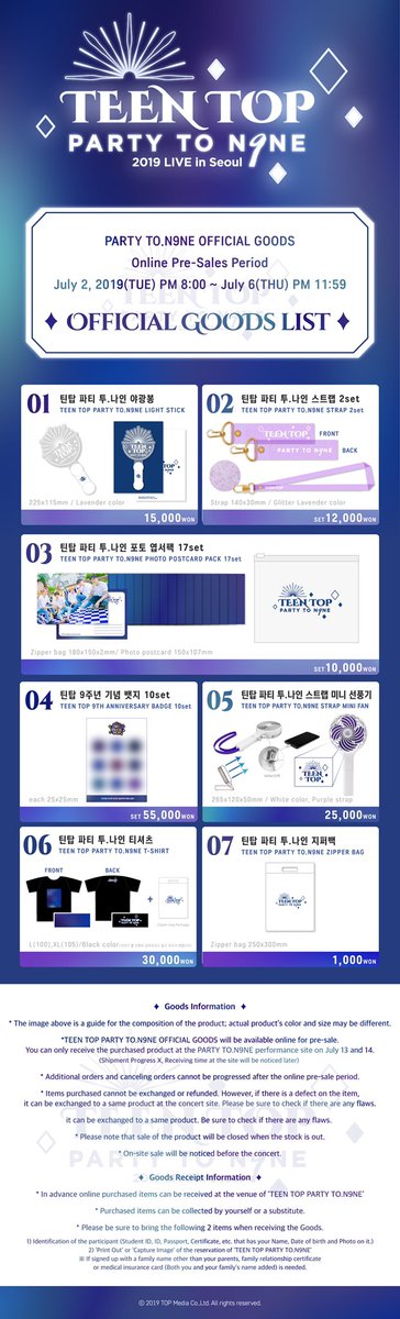 TEEN TOP PARTY TO.N9NE OFFICIAL GOODS 온라인 사전 판매 안내
