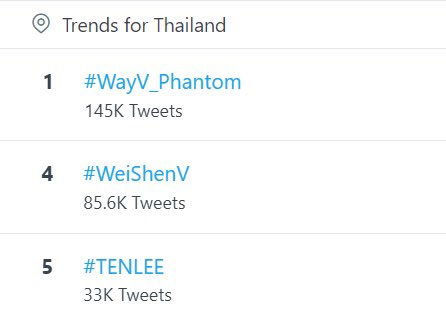 Hashtag #WayV_Phantom is trending no.3 on Thailand twitter trends 🇹🇭
