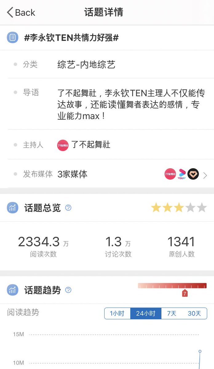 TEN’s hashtag has 30.07 million views on Weibo with 30,253 people use this hastag : #李永钦TEN共情力好强# 🔥🔥🔥
