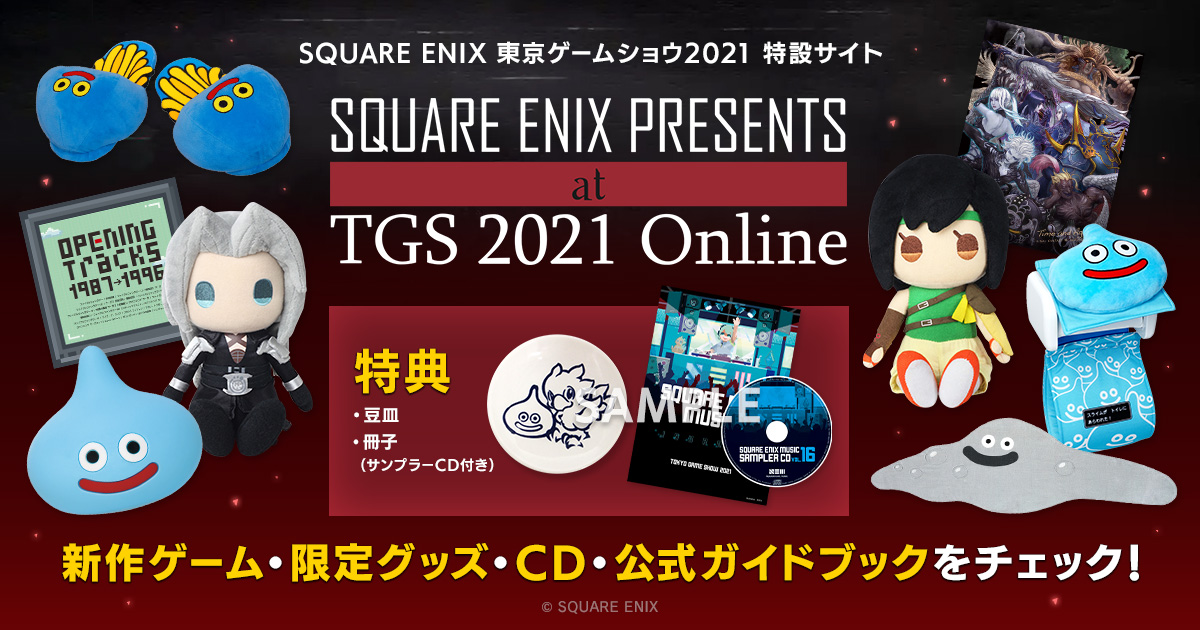 本日公開「SQUARE ENIX PRESENTS at TGS 2021 Online」特設サイトに、物販情報を掲載しております!「TGS2021」開催に合わせて予約受付を開始する最新作の商品や、期間限定商品などをラインナップいたします。先着でもらえる購入特典キャンペーンも実施決定!#TGS2021