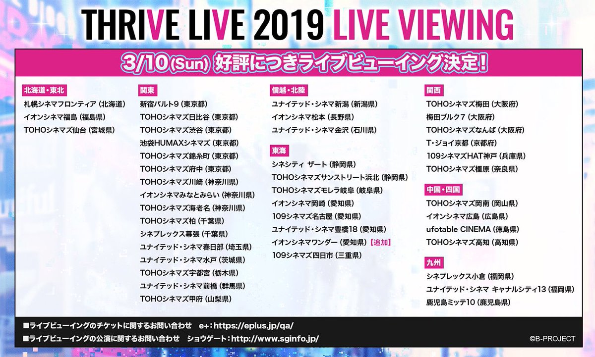 【EVENT】B-PROJECT単独ライブ第1弾 ★THRIVE LIVE2019★のライブビューイングチケットの一般販売情報・物販情報を更新致しました。チケットの受付は2/23(土)10時よりスタート致します。物販の営業時間やチケットの詳細は特設サイトをご確認ください⇒ bpro-official.com/sp/thrivelive2… #Bプロ #THRIVE