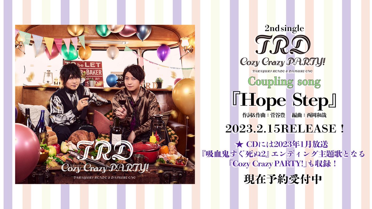 本日発売の声優グランプリ12月号には近藤孝行さんと小野大輔さんのユニットTRDが登場🚗💨 発売中の1stシングル「Strangers」のMV撮影に密着🧳 EDテーマになっているTVアニメ『吸血鬼すぐ死ぬ』にちなんだ質問も🧛♂️
