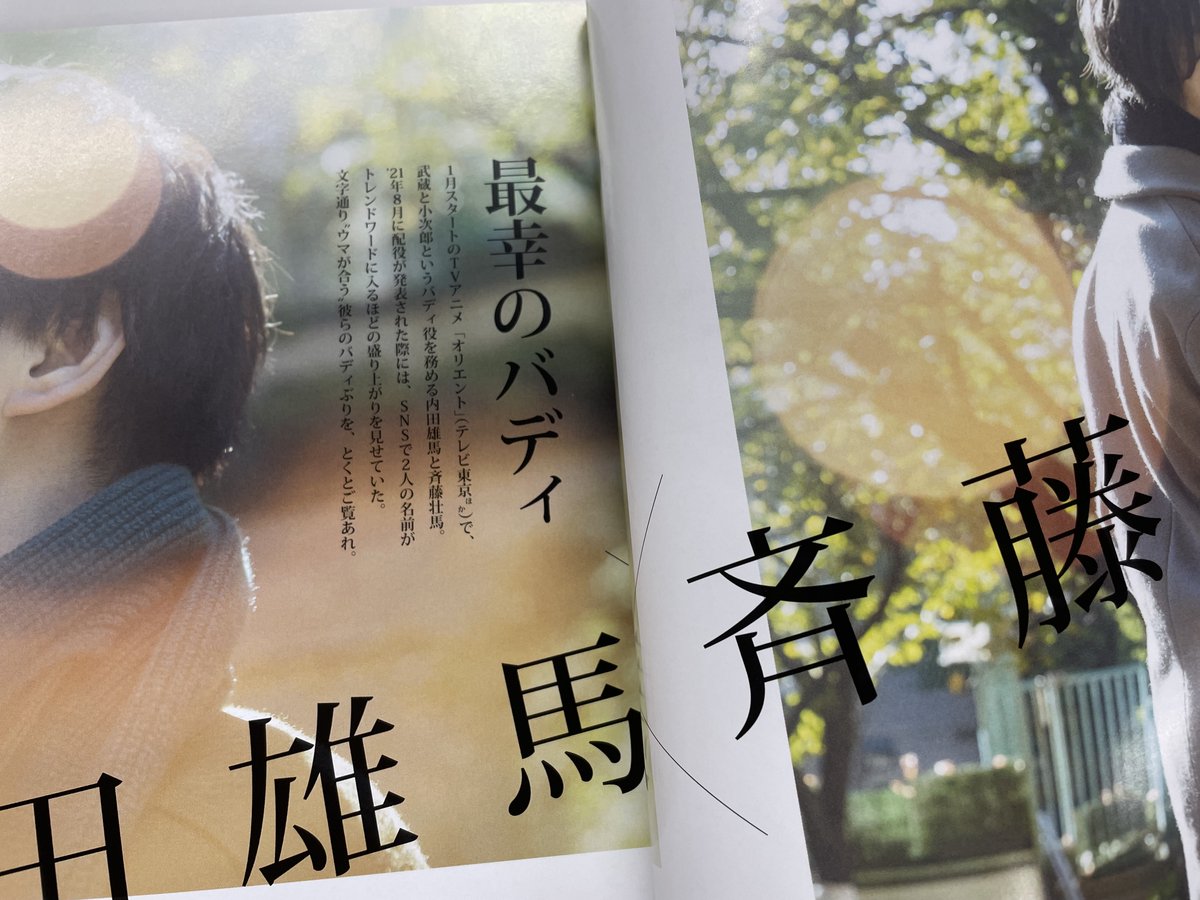 【「#TVガイドVOICESTARS vol.20」12/17発売】巻頭特集は1月スタートのアニメ「オリエント」(@orient_PR)から #内田雄馬 さん×#斉藤壮馬 さん。“ルームシェア”をテーマに撮影したグラビアや、初対面から今に至るまでの関係性が語られた1万字超えインタビューは必読!ご予約はzasshi.tv/products/14665/