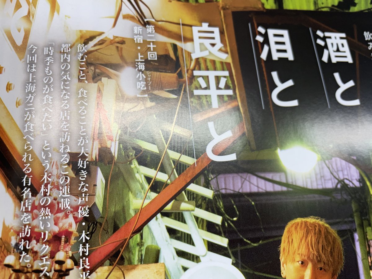 【「#TVガイドVOICESTARS vol.20」12/17発売】#木村良平 さん(@Ryouhey_Drunk)の飲み歩き連載「酒と泪と良平と」は、上海ガニを食べに新宿・歌舞伎町へ。上海を思わせるディープスポットで、「この店は全部うまい。よく知らずに生きてきたな…」と木村さんも大絶賛!ご予約はzasshi.tv/products/14665/