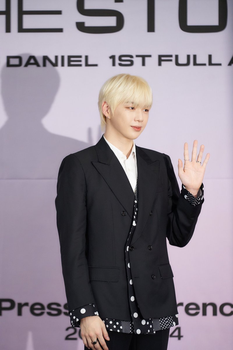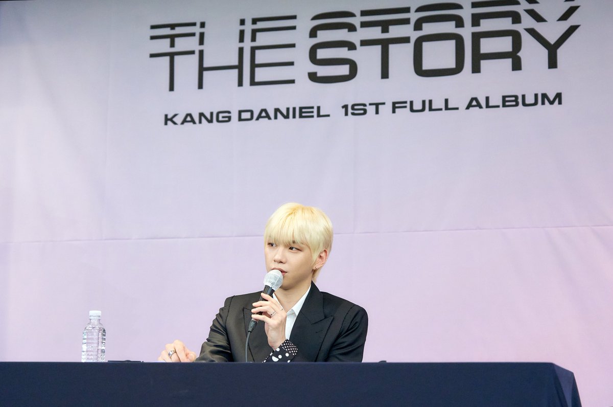 People tell stories about themselves in various ways, but @konnect_danielk chose to do it by releasing his first LP, "The Story," which will be out in less than two hours! Sharing some pictures of the man during Monday's press conference. 🖤 #KANGDANIEL #TheStory