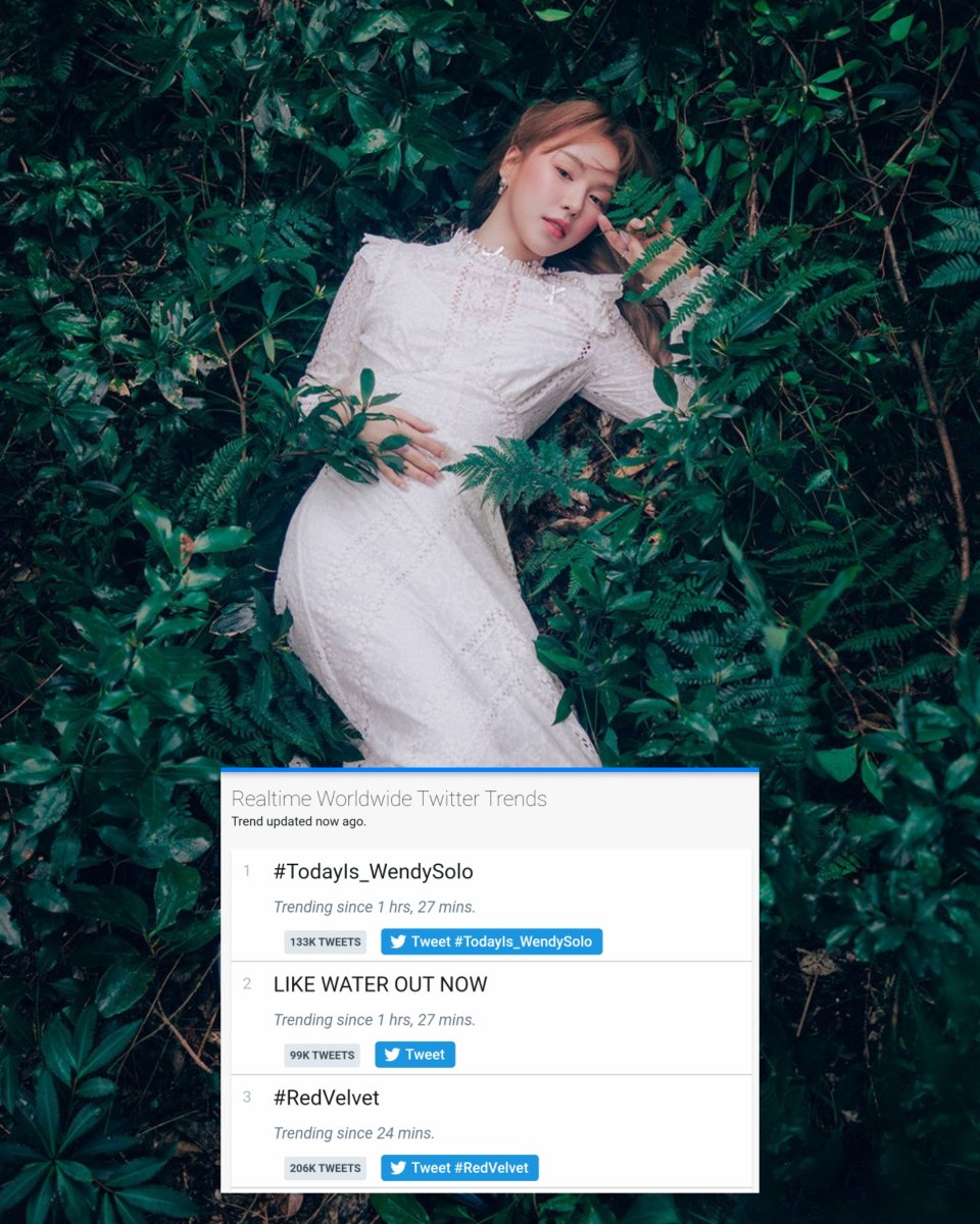 .@RVsmtown #TodayIs_WendySolo and "LIKE WATER OUT NOW" are currently trending #1 and #2 Worldwide
