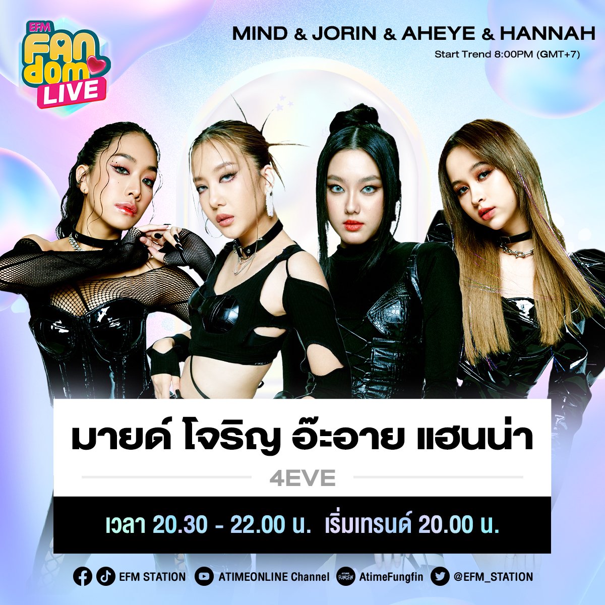ศุกร์นี้ #EFMFANDOMLIVE เปิดสตูดิโอต้อนรับ “มายด์ โจริญ อ๊ะอาย แฮนน่า” ตัวแทนจากวง 4EVE ค่า