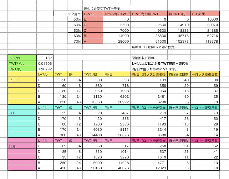 一日あたり報酬表(赤は無視でも○)