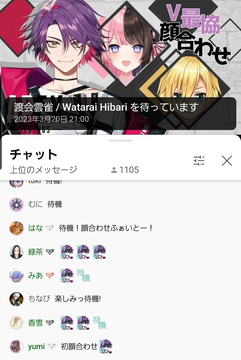 卯月コウ、渡会雲雀くん、橘ひなのちゃんのV最協顔合わせ配信の待機所コメント欄の雰囲気が、既に全然違うの流石に草