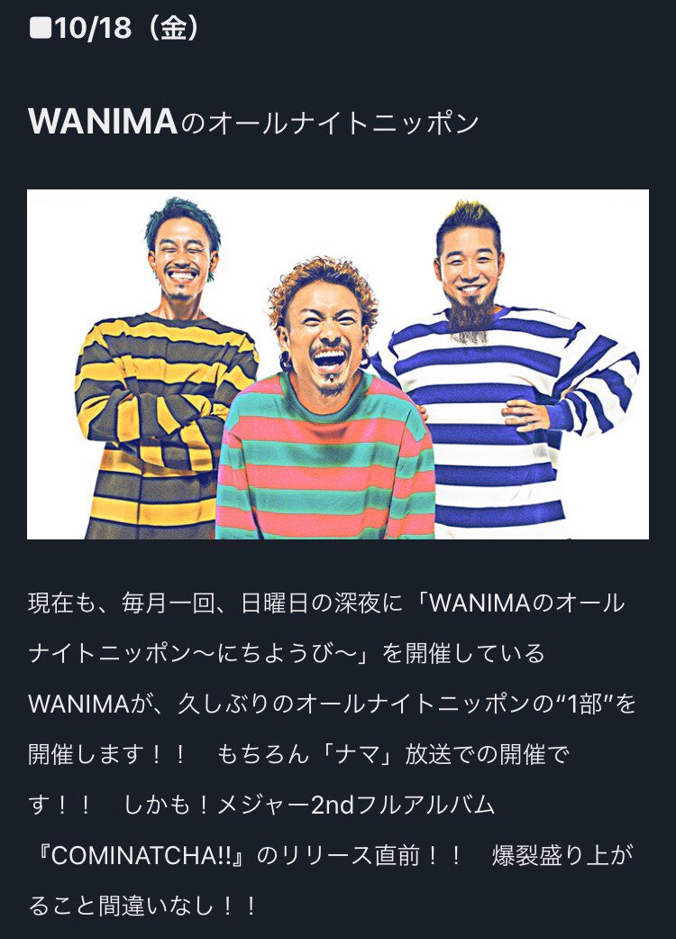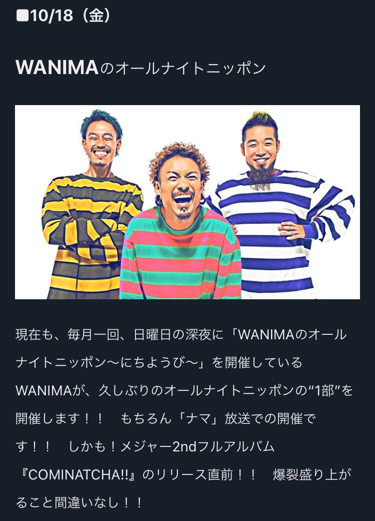 10/18(金)深夜1時〜の『WANIMAのオールナイトニッポン』は…‼️