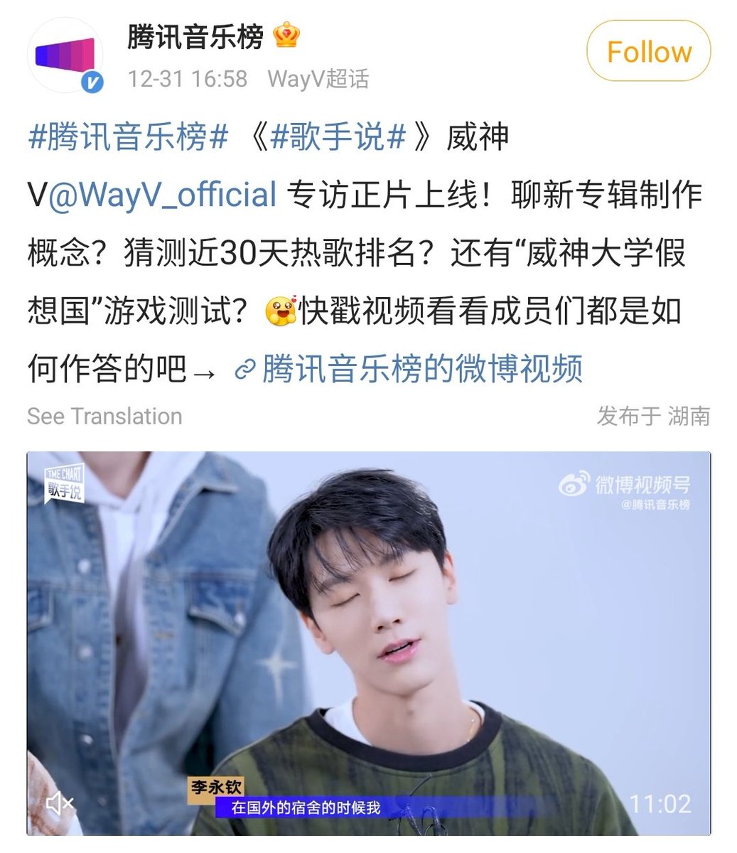 บทสัมภาษณ์ของเตนล์และ WayV กับ 腾讯音乐榜 ค่ะ เพื่อนๆสามารถดูคลิปเต็มๆได้ที่ share.api.weibo.cn/share/35877448…