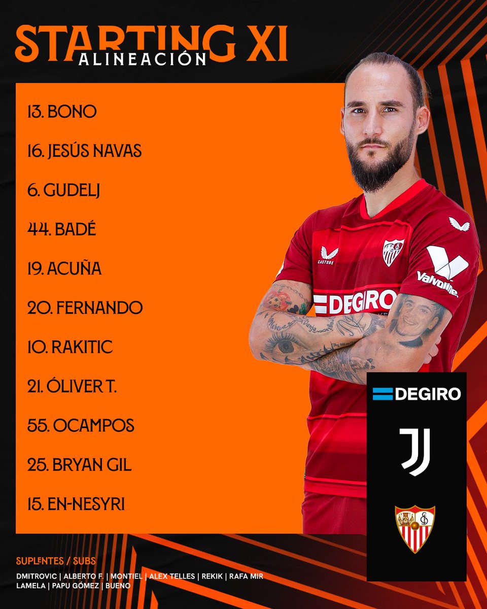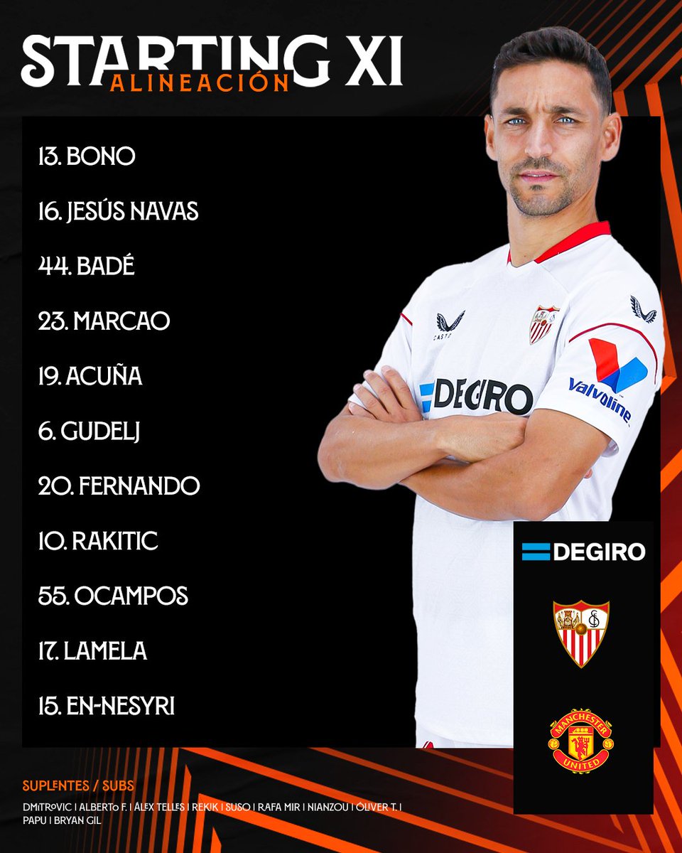 Bono - Jesús Navas, Badé, Marcao, Acuña - Gudelj, Fernando, Rakitic, Ocampos, Lamela - En-Nesyri.