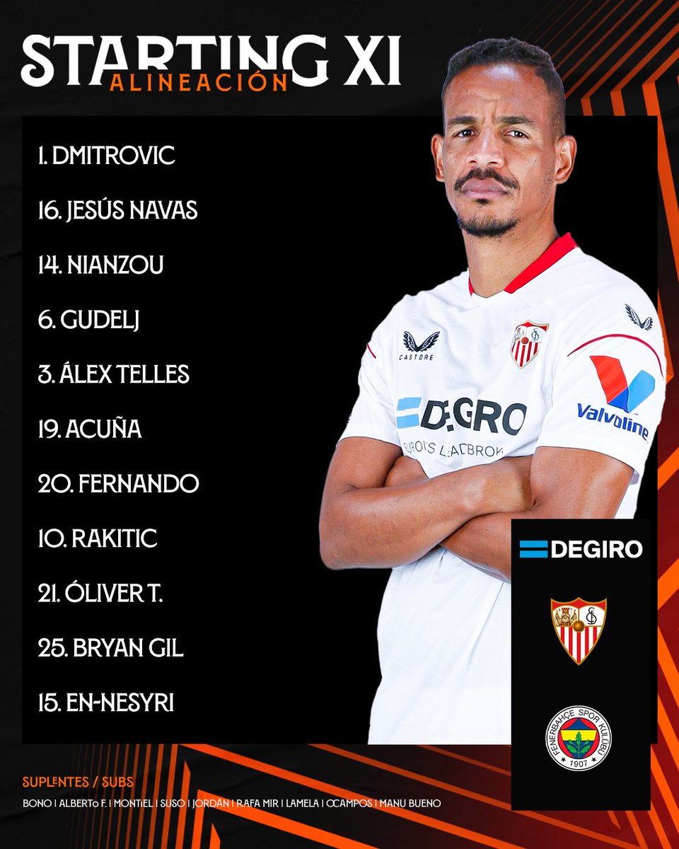 Dmitrovic - Montiel, Badé, Gudelj, Rekik, Acuña - Rakitic, Jordán, Lamela, Suso - En-Nesyri.