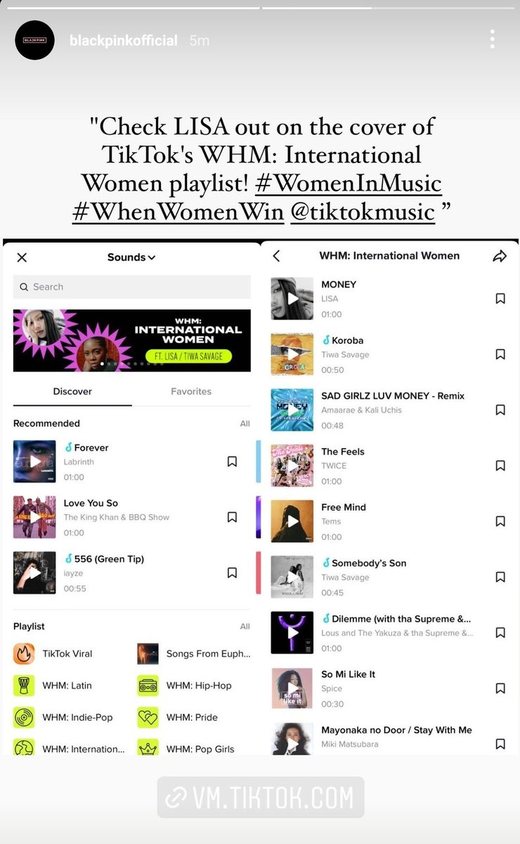 "Check LISA out on the cover of TikTok's WHM: International Women playlist! #WomenInMusic #WhenWomenWin @tiktok_us"