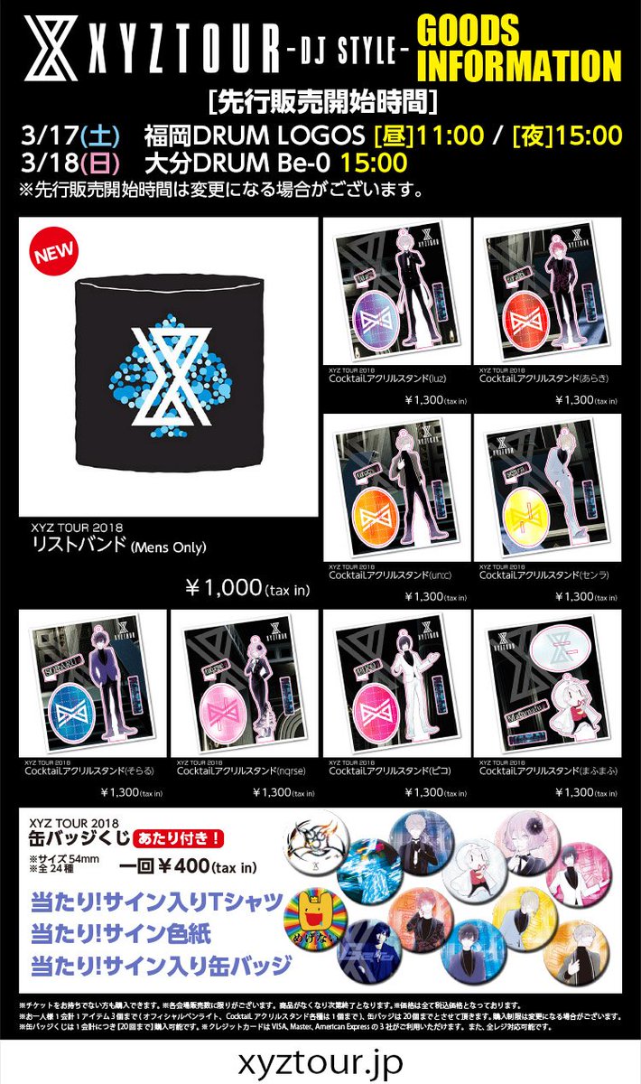 【XYZ TOUR 2018 -DJ Style- グッズ情報!】