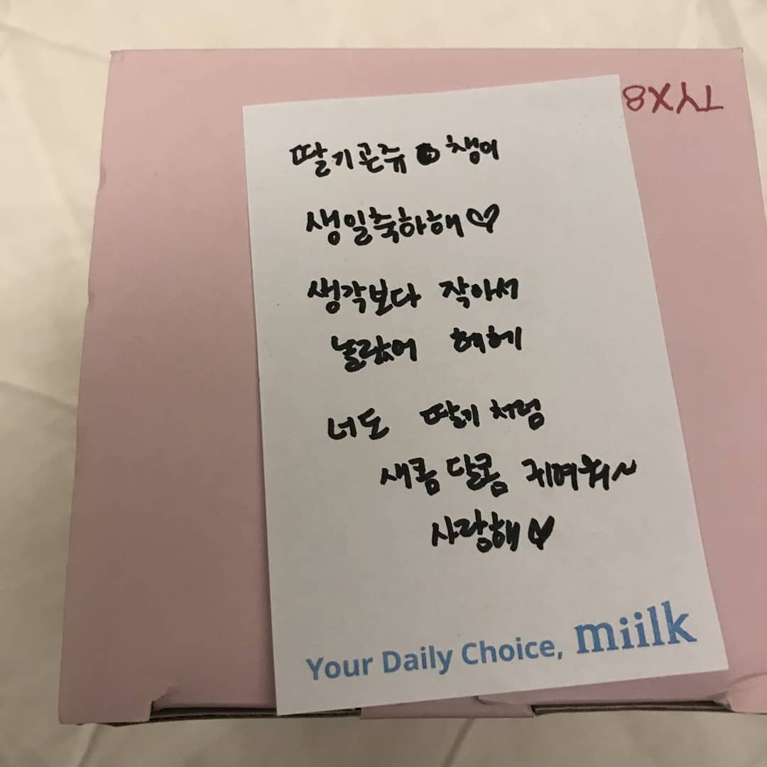 그냥 딸기가 없는 케잌인데 멤버들이 딸기를 사서 직접 데코해서 해줬어요🍓🍓 너무너무 고맙고 사랑해요