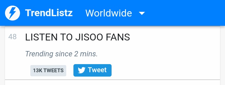 LISTEN TO JISOO FANS is trending #48 WORLDWIDE. Keep tweeting!