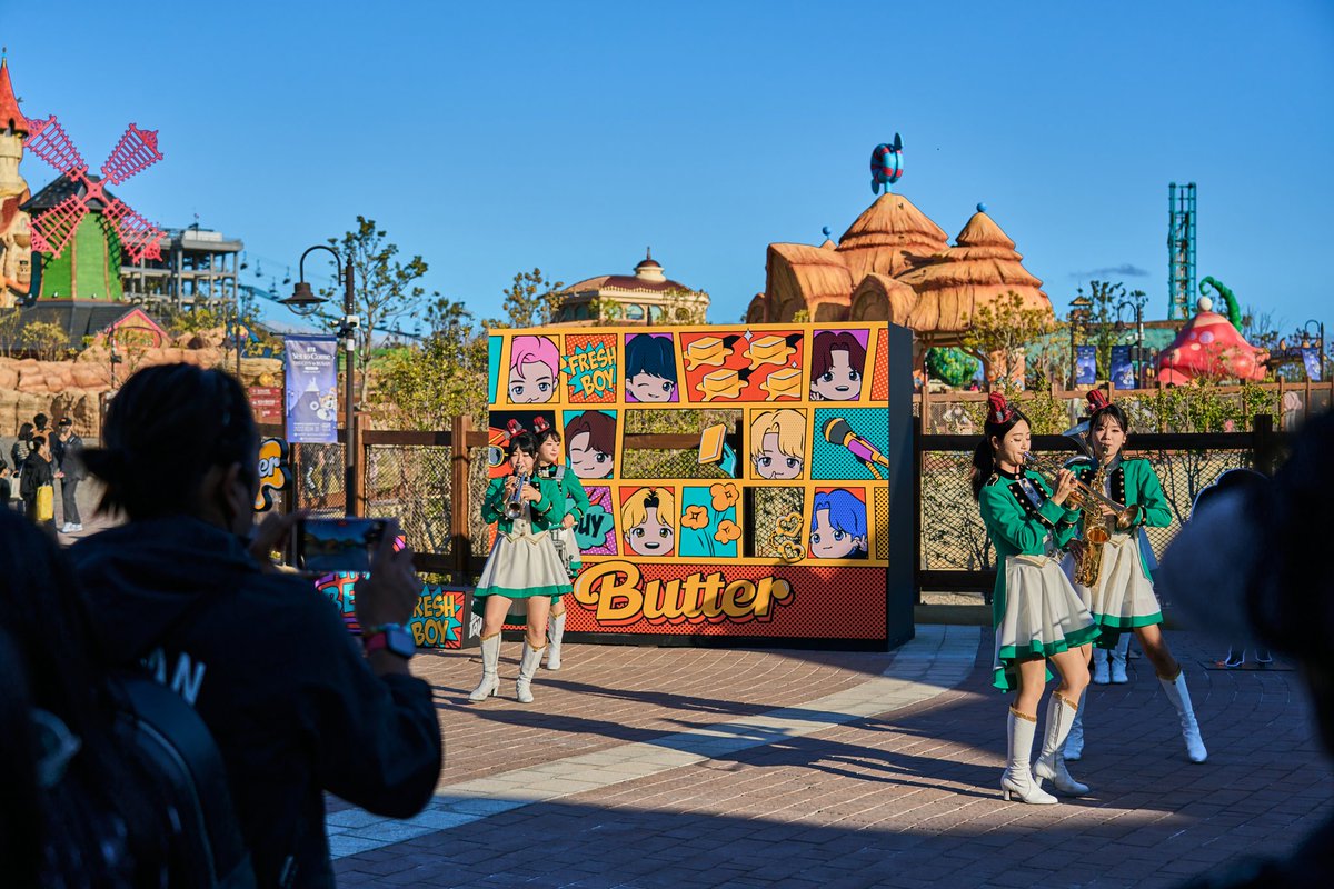Official pics from @HYBEOFFICIALtwt of Lotte World Adventure Busan decorated into a @BTS_twt theme park! Who's coming tonight?! #YetToCome #YetToComeTHECITYinBUSAN #PurpleLightsUp