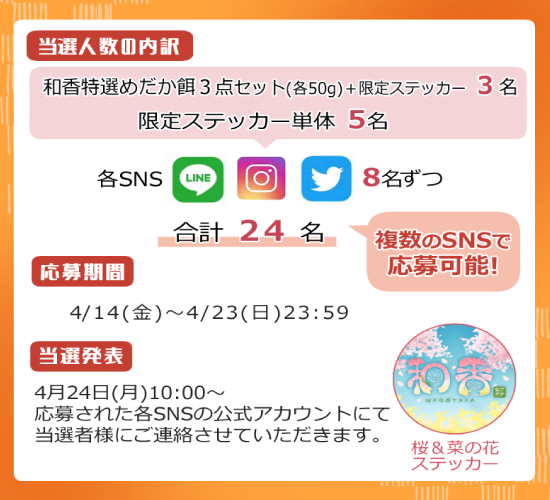#和香特選めだか餌&#4月ステッカー