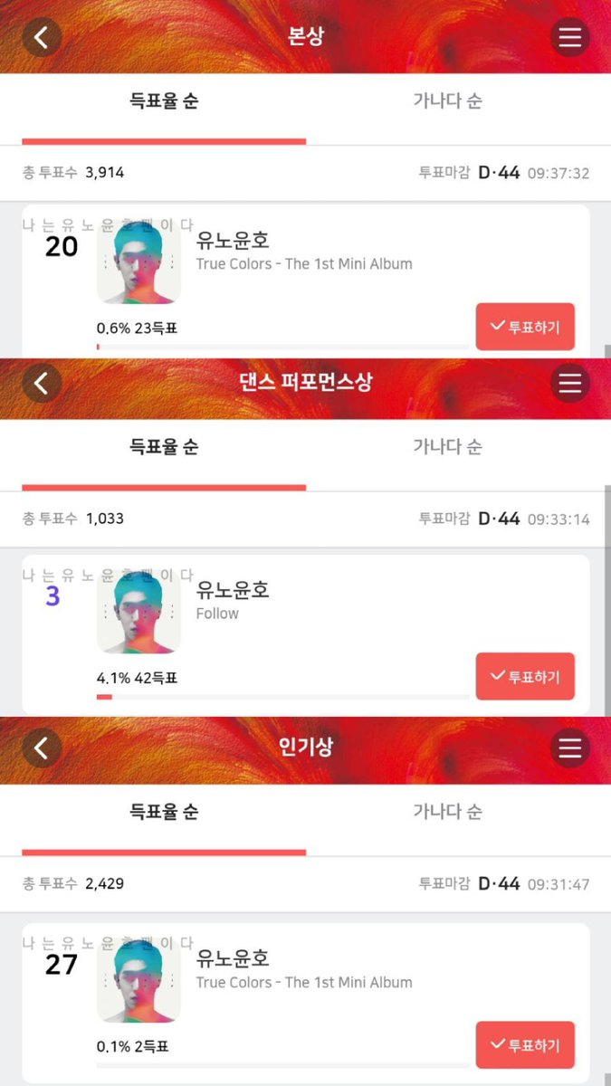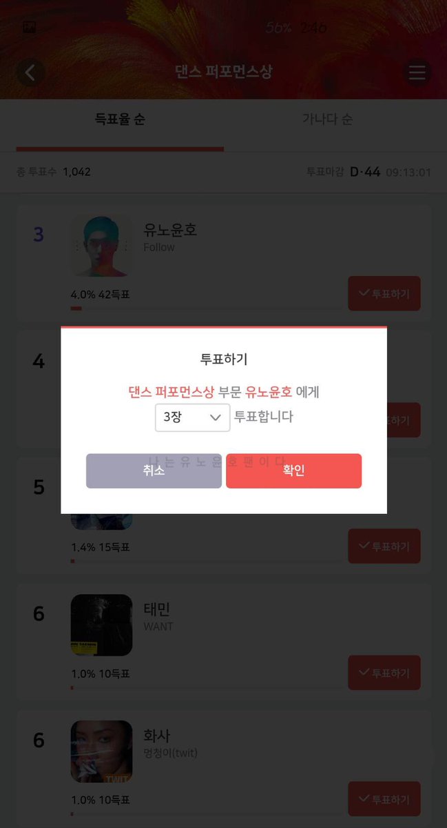 ⚠️ 상위권 진입이 유리한 댄스퍼포먼스 부문 위주로 투표 해주세요.