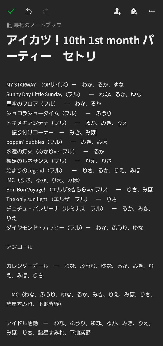 アイカツ!シリーズ 10th Thanks Party<1st month >セットリスト #aikatsu #aikatsu10th