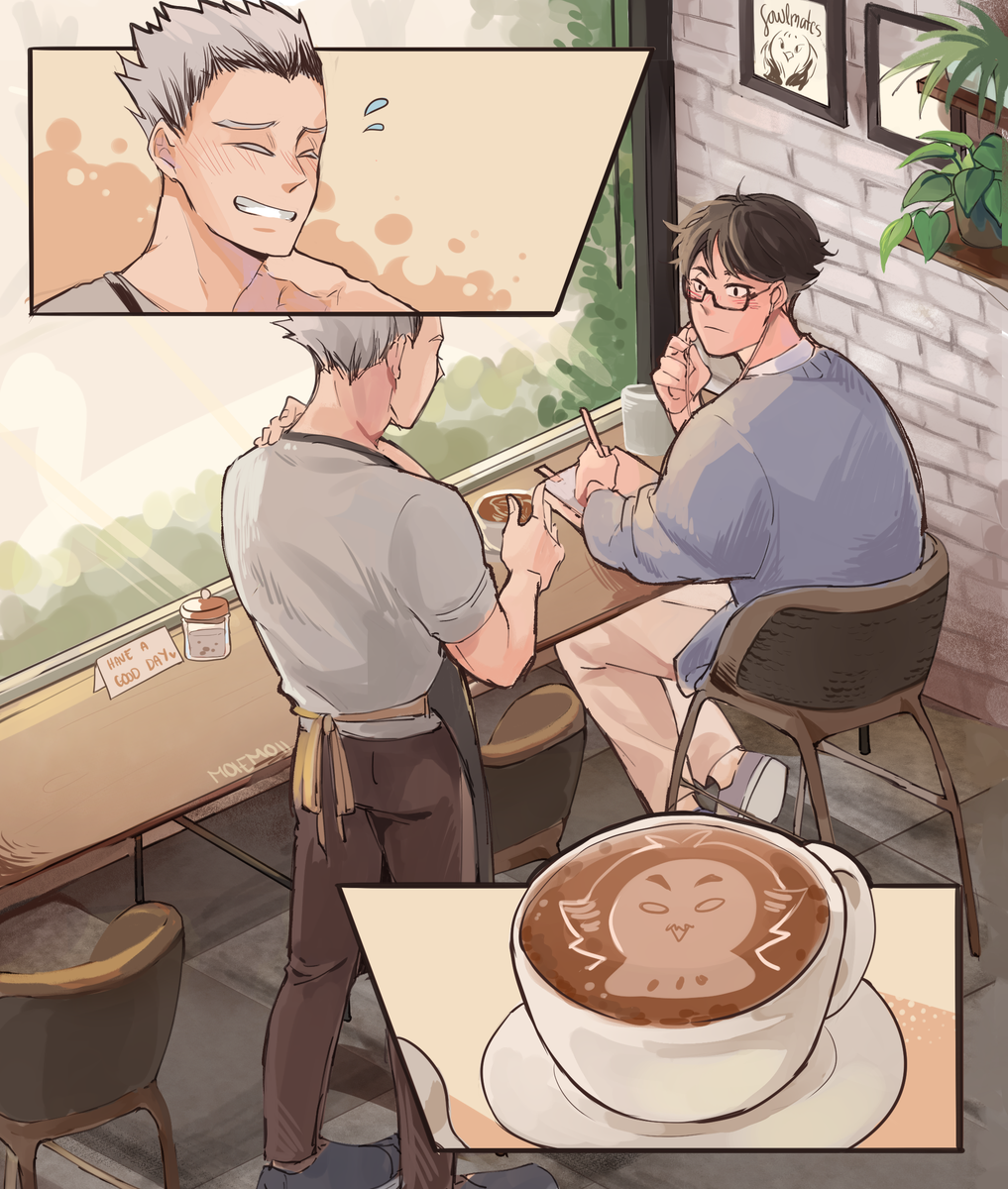 [Day 1 - Coffee Shop AU] Casually sliding some coffee to your favorite regular. #bokuakaweek