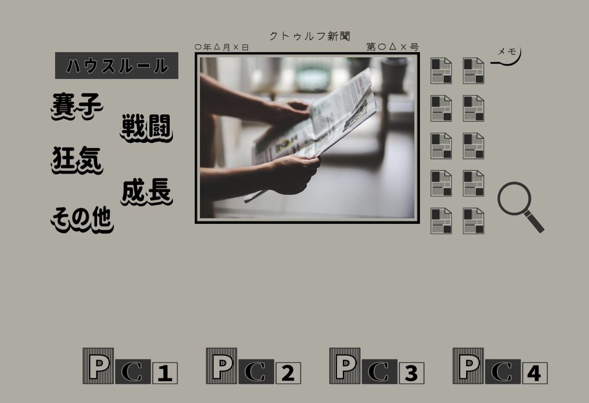 【無料】新聞風ココフォリア部屋素材【クトゥルフ神話TRPG用】 | サークル【チョウチンアンコウ】 footballfish.booth.pm/items/4093767 #booth_pm