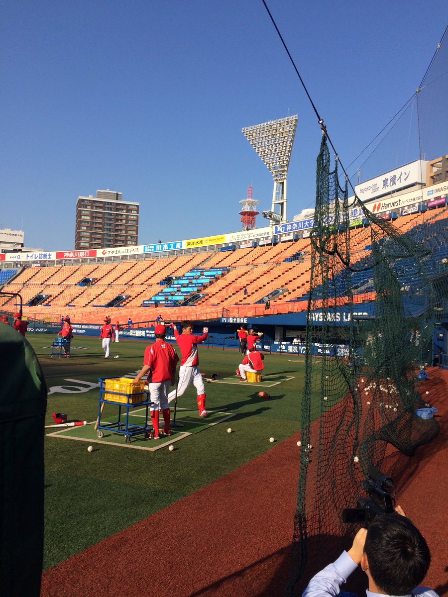 先日の試合で死球を受けた新井さんですが、今日もいつもどおりバッティング練習中!2000本安打達成まで残り8本!
