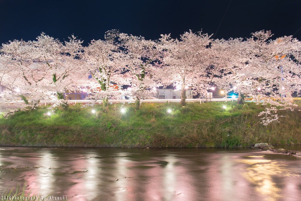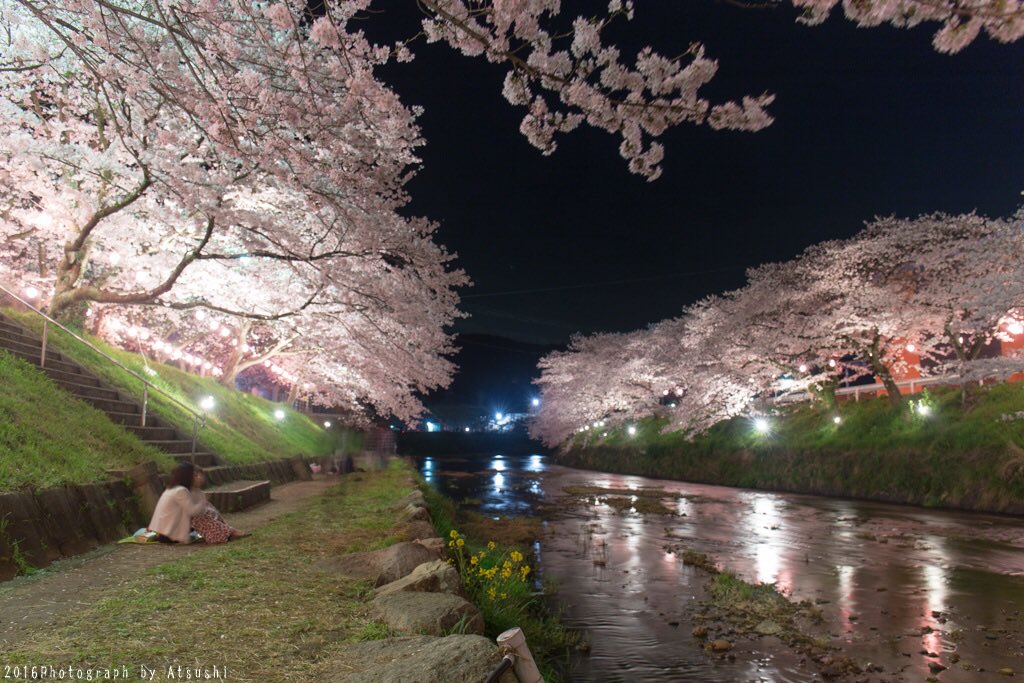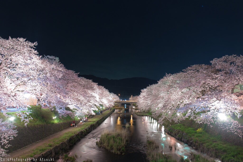 これが、山口県美祢市の本気。 美祢の夜桜は最高。 満開の桜と水面の反射は美しすぎる。