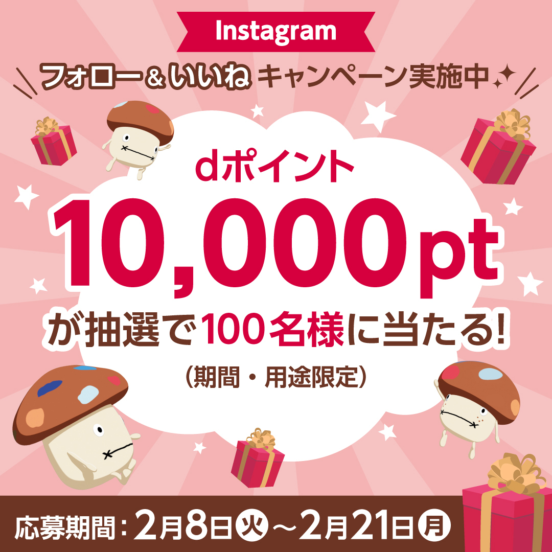 ドコモ公式Instagramアカウントにて #dポイント 10,000pt(期間・用途限定)が当たるキャンペーンを開催中❗