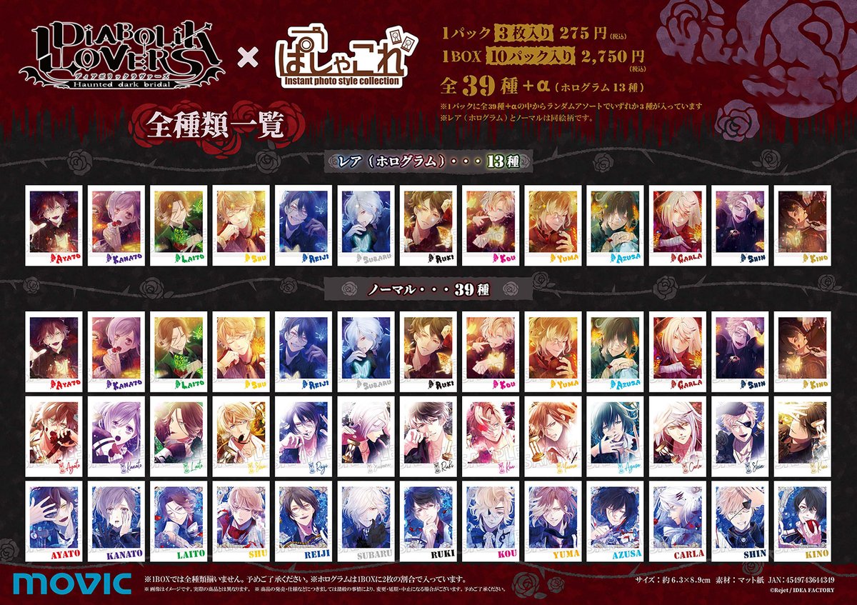 【DIABOLIK LOVERS】インスタントカメラで撮影したような写真風コレクションアイテム「ぱしゃこれ」が好評予約受付中!