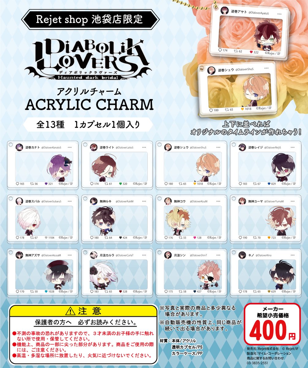12月20日(日)より、Rejet shop池袋本店限定ガチャの発売が決定!!!