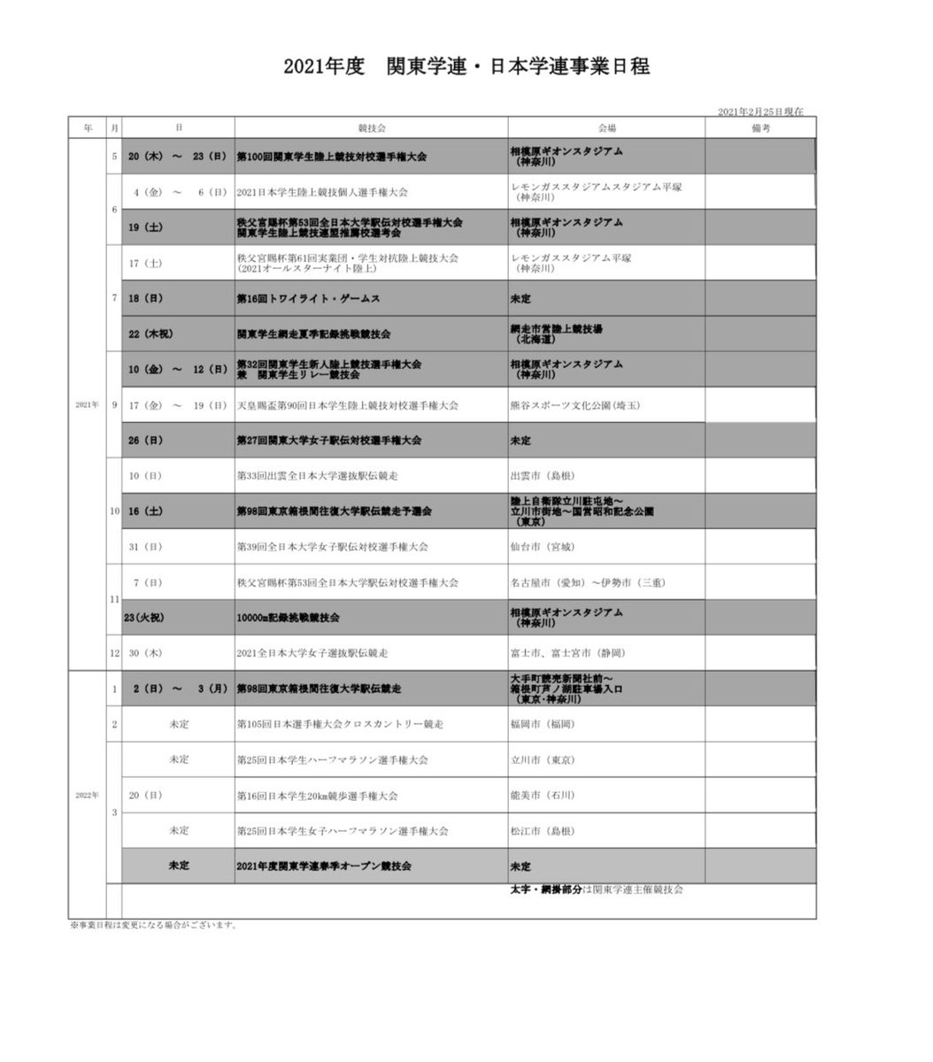 2021年度のスケジュールが出ました🗓
