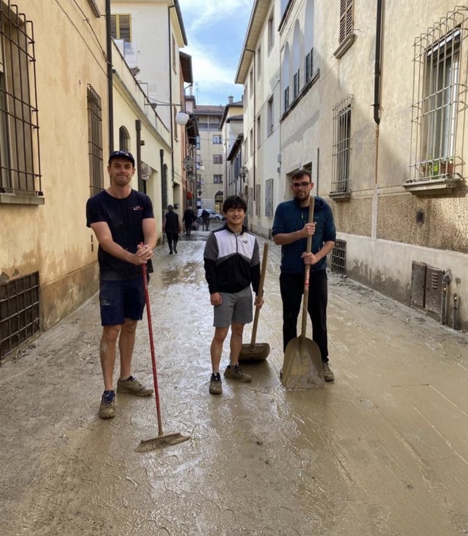 角田くん、洪水の水が引いた街の清掃活動を行った模様。素晴らしいボランティア精神👍😀 #f1jp