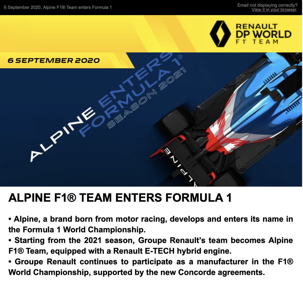 噂通り、ルノーF1は来季から「アルピーヌF1」に名称変更します。昔のアルピーヌA110は大好きな車で、程度のいい大古車を探したこともありました。でもオールドファンにとってアルピーヌって、やっぱりラリーのイメージだよね・・。#f1jp
