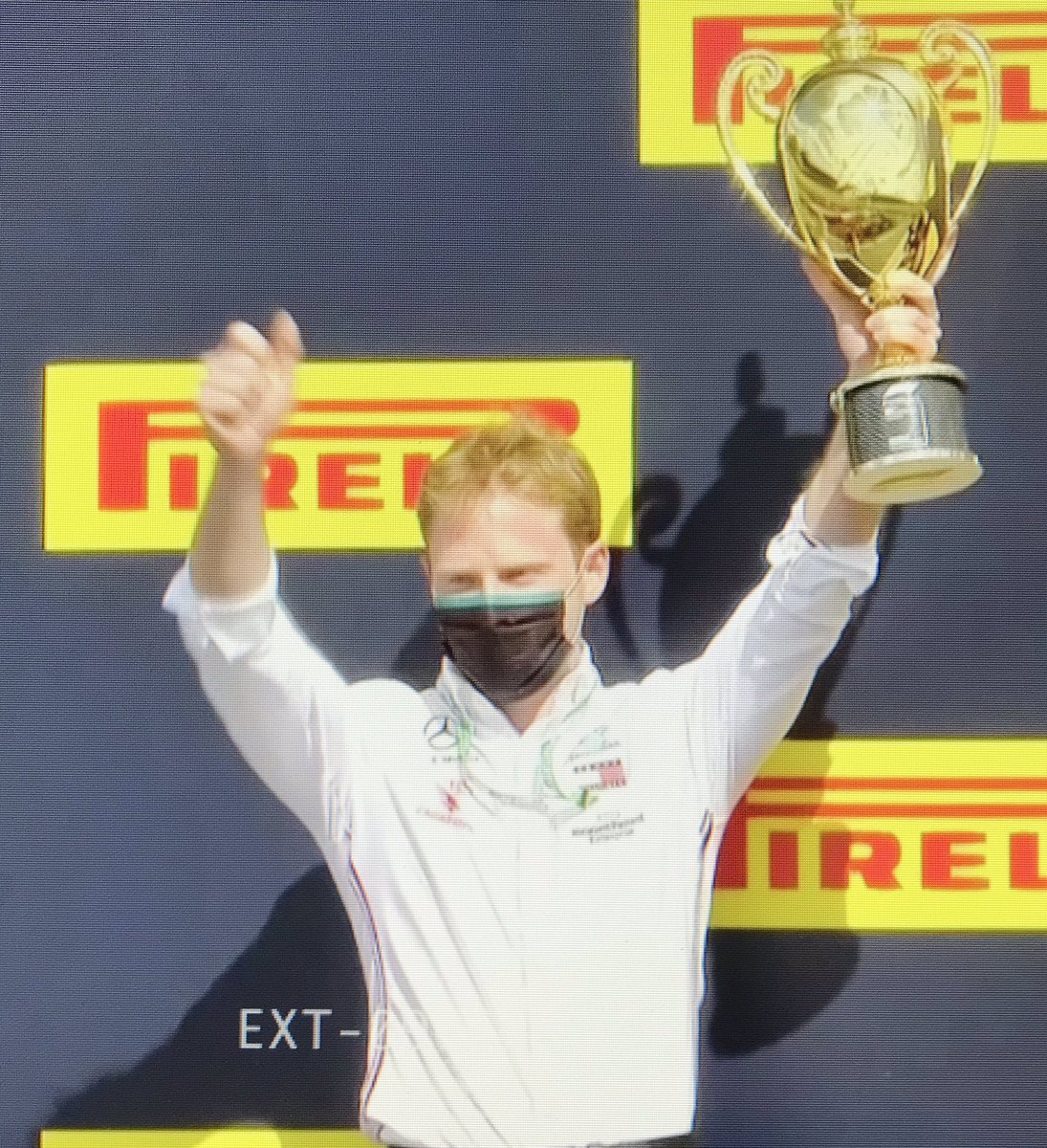 大波乱のイギリスGPでしたね。フェルスタッペン、惜しかった〜。表彰台に立ったメルセデスのこのスタッフ、ジル・ピローニという名前の信頼性担当エンジニアです。そう、ディディエの息子なんですよ!#f1jp