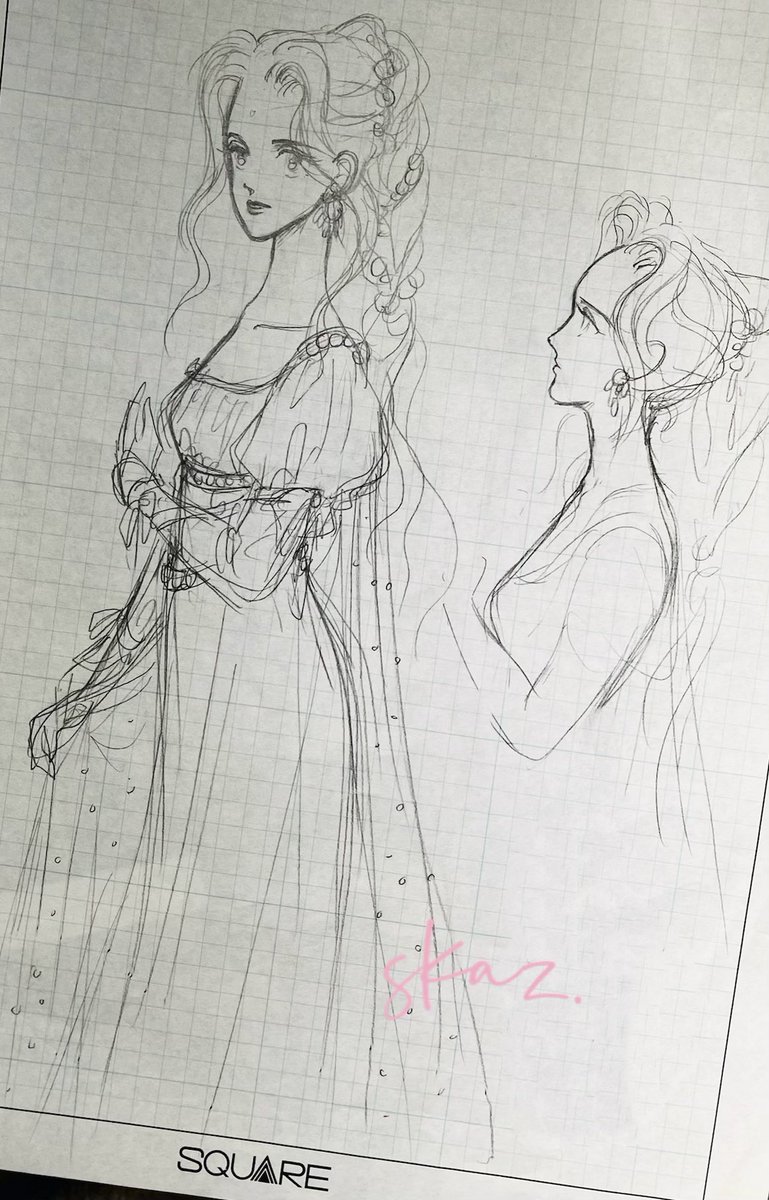 3/10はセリスの誕生日なんですって。知らなかった〜😌せっかくだから27年前?に描いたオペラのセリスの初稿?というかドレスデザインを考えてた時の個人的お遊びラフをプレゼントするね💗かわいいよね😊